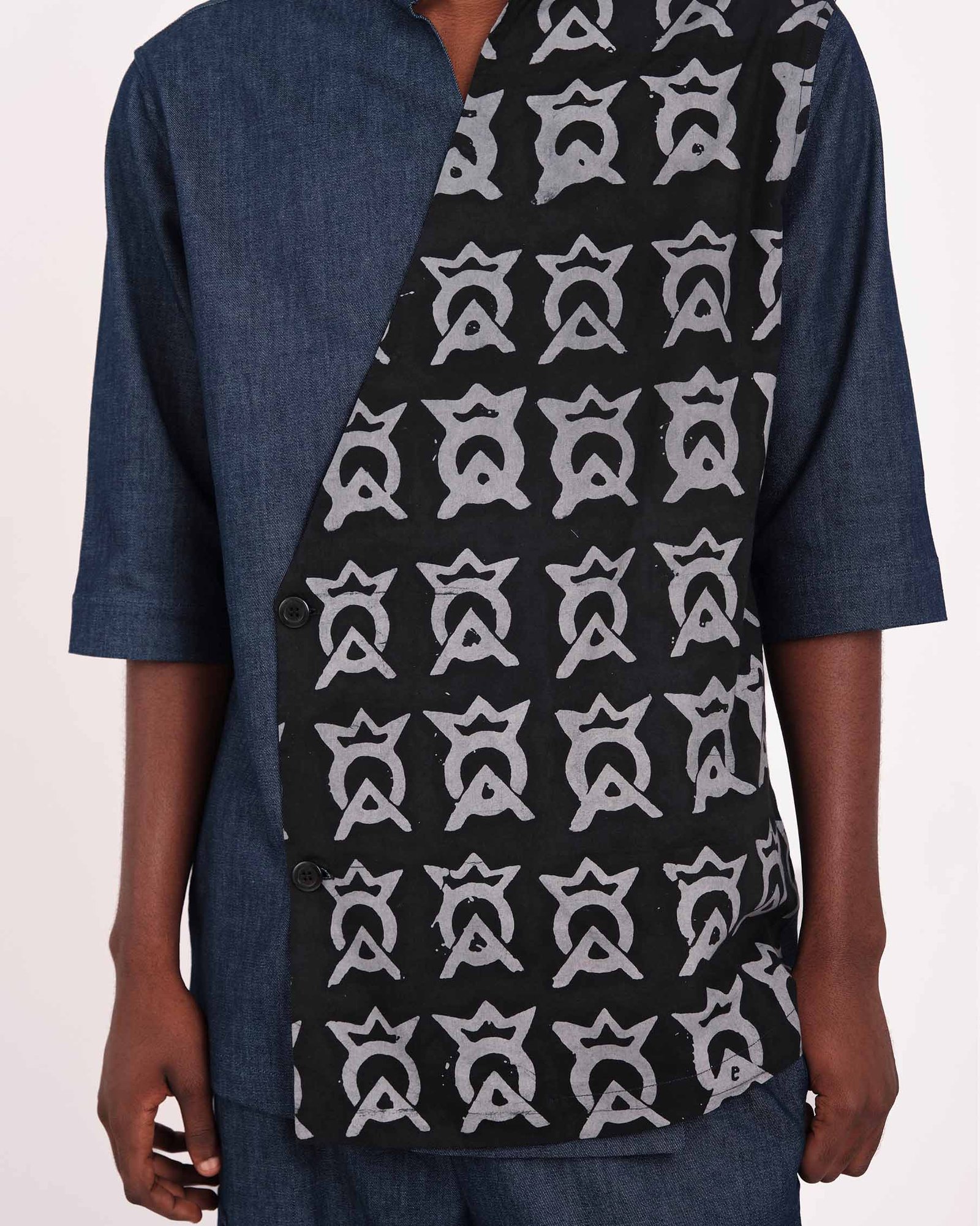 Design: OA Crown symbol in Adire print with Premium Denim