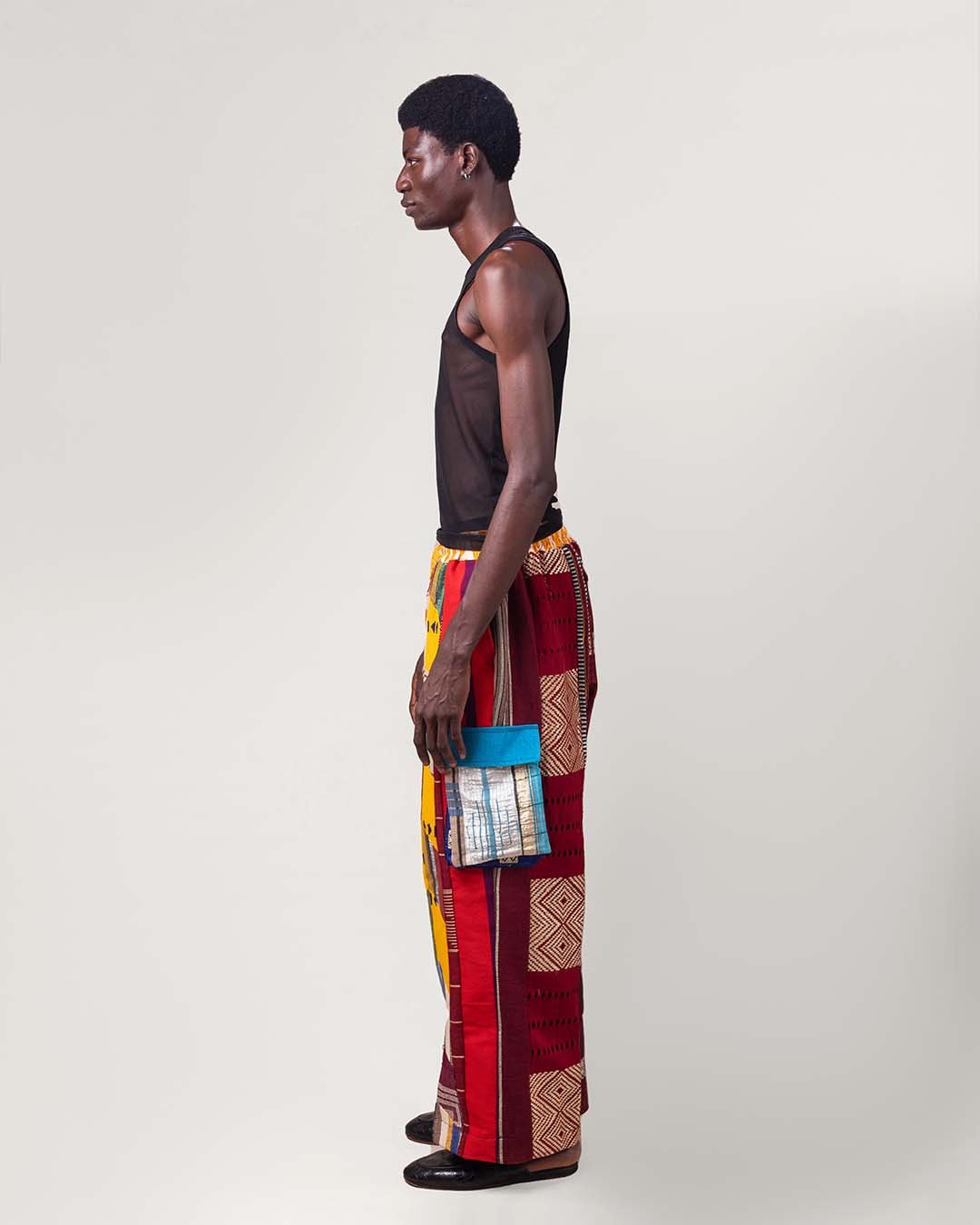 Asa means culture, this Pant is a powerful homage to tradition bold, and unapologetically modern. Each pant is individually constructed with African handwoven panels, showcasing a collision of color, and texture. It is one-of-one. no replicas, no repeats.