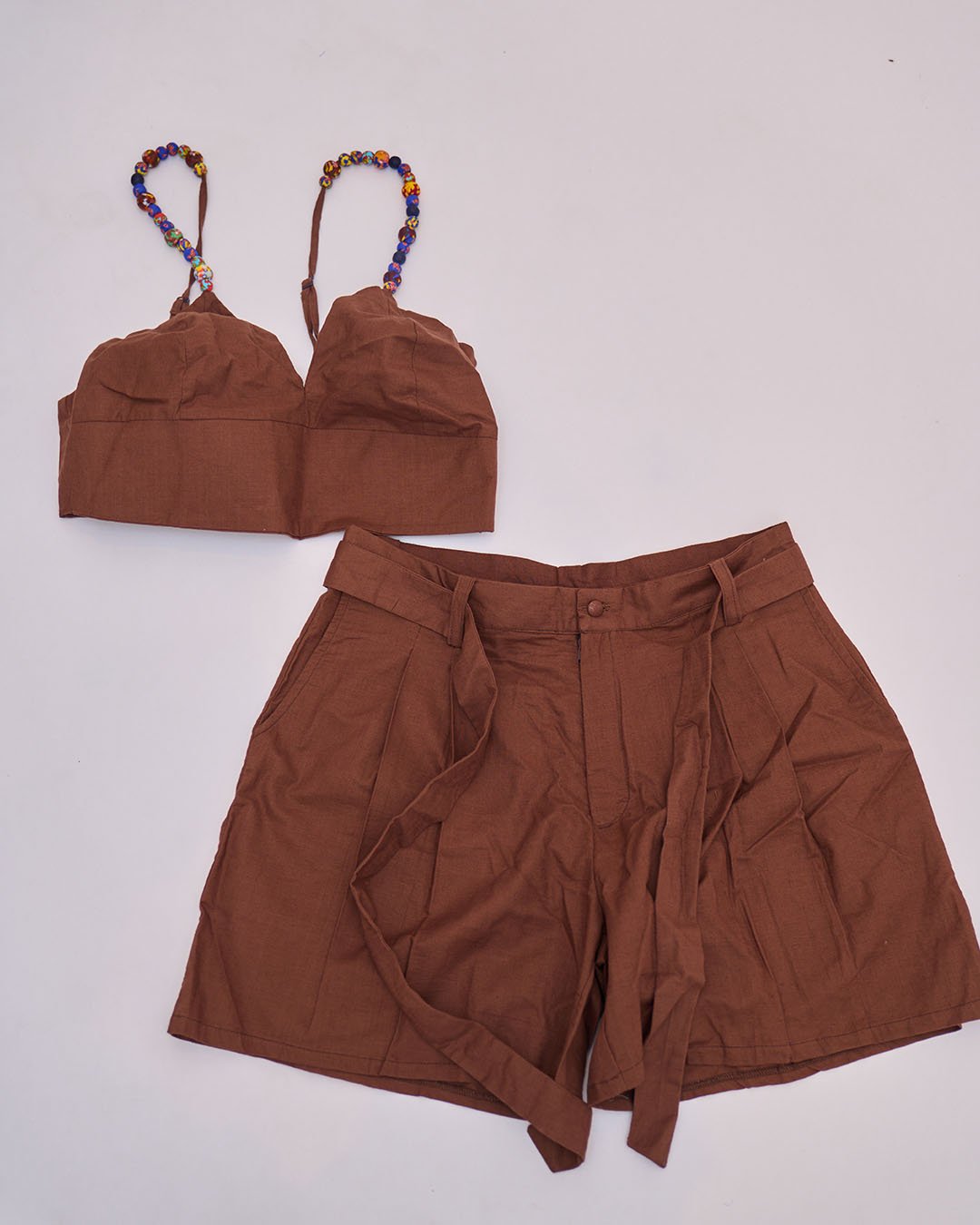 Elevate your summer style with the ZURI Linen Co-Ord Set – a chic and breathable two-piece outfit designed for modern, confident women. Crafted from premium-quality linen, this set features a flattering cropped top with vibrant handcrafted beaded straps and high-waisted belted shorts with a relaxed fit. Perfect for brunch, vacation, or a casual day out, this effortlessly stylish co-ord set blends comfort with elegance.