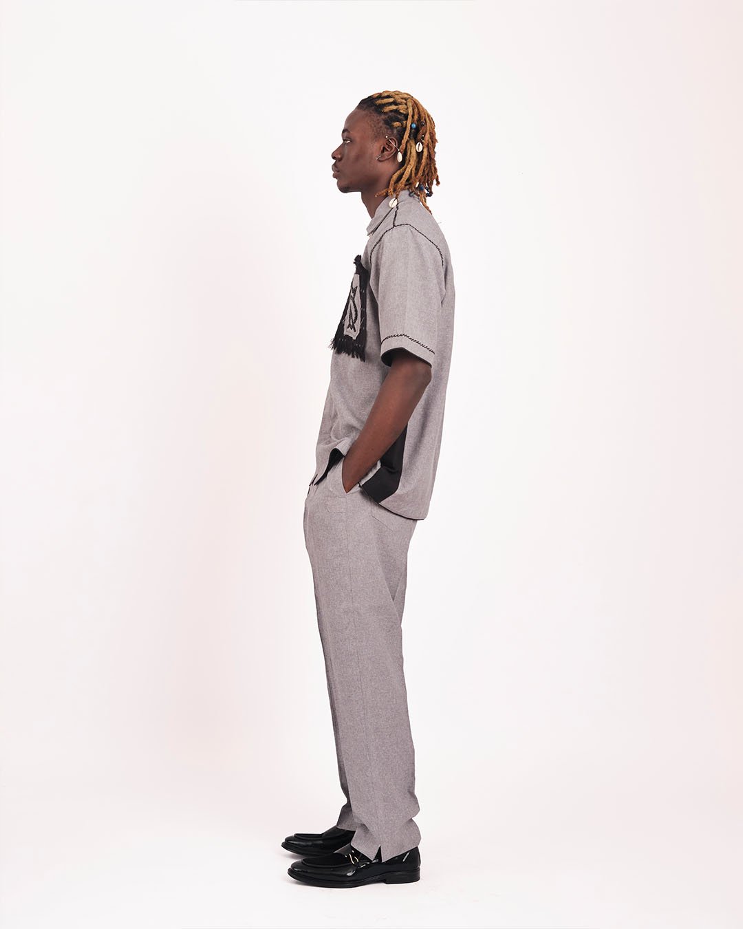 Crafted from fine linen, this relaxed yet structured silhouette features a single chest pocket detailed with an overlay of Aso Oke and Adire, paying homage to traditional craftsmanship. Embellished with the beaded OA emblem on the crown — a proud symbol of the Ojúde Aso identity — the piece captures the essence of modern African luxury: effortless, intentional, and timeless.